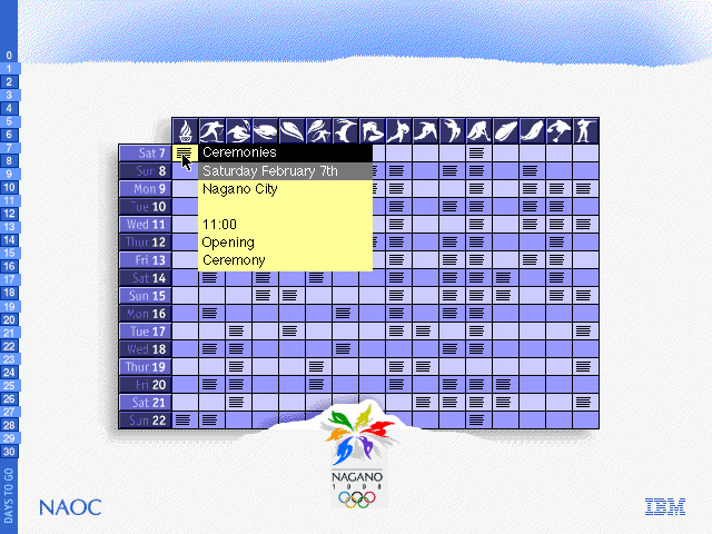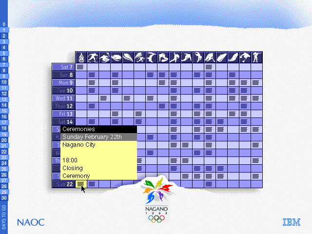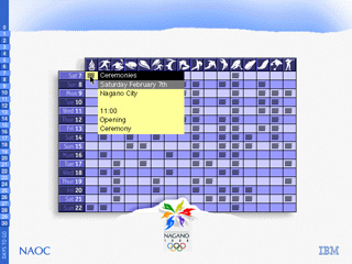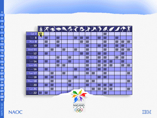 大会期間中は毎日、その日にどこでどの競技があるのかが、一覧されたテーブルが出て来ます。